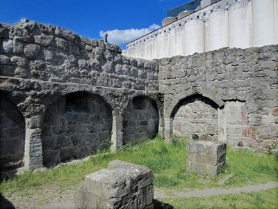 Esta fortaleza pode ter sido uma das primeiras estruturas defensivas de pedra em toda a Escandinavia, originalmente chamada de Castro Aaos. O nome original sugere conexoes continentais precoces e uma historia que remonta ao inicio do periodo medieval.