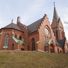 A estrutura em pedra da Igreja Fässberg apresenta elementos arquitetônicos característicos dos edifícios religiosos suecos do século XIX, com uma torre sineira proeminente.
