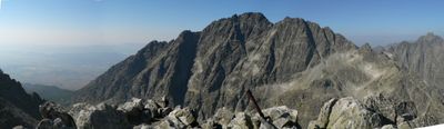 Zadný Gerlach é um pico granítico nos Altos Tatras que se eleva a cerca de 2600 metros, apresentando três picos distintos que formam um perfil triangular ao longo da crista principal. A montanha mostra as formações rochosas expostas típicas desta zona alpina.