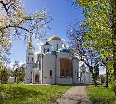 A construção da Catedral da Transfiguração começou em 1036 sob o Príncipe Mstislav de Chernigov, alcançando a altura de um cavaleiro quando ele morreu.
