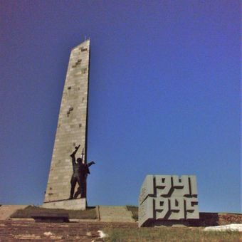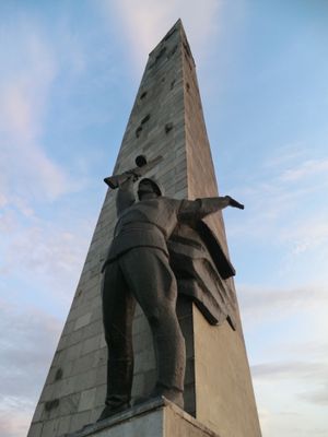 A colina de 278 metros inclui um obelisco e esculturas dedicadas a unidades militares, dominando os territórios entre Luhansk e Donetsk.