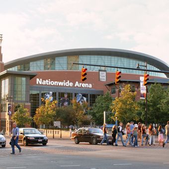 O Nationwide Arena é um recinto polivalente no centro de Columbus com mais de 18.000 lugares, situado no Arena District entre os bairros de Short North e Brewery District. As bancadas rodeiam a superfície de gelo em três níveis com camarotes de luxo, enquanto o telhado apresenta vigas de aço expostas e a fachada combina vidro e tijolo.