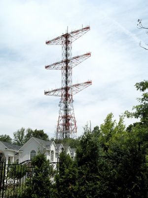Edwin Howard Armstrong construiu essa instalação de transmissão em 1938 para transmitir sinais de rádio FM experimentais sob o indicativo W2XMN. A torre representou um passo importante no desenvolvimento da tecnologia de rádio da época.