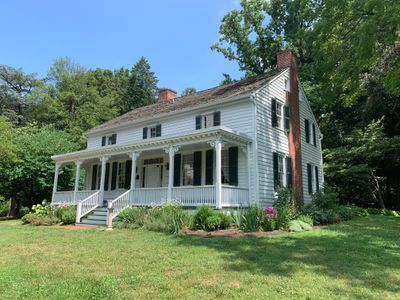 Cherry Hill Farmhouse é uma estrutura de estilo clássico com design simétrico e altas colunas brancas em sua fachada principal. O edifício fica em sete hectares com estruturas originais que refletem como uma propriedade do século XIX era organizada.