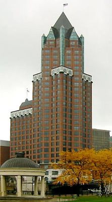 Associated Bank River Center, Arranha-céu pós-moderno no centro de Milwaukee, Estados Unidos