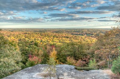 Bradbury Mountain State Park e uma area florestal no Maine com varios caminhos que levam a um pico de granito. Do topo ha vistas do paisagem circundante e do territorio alem da regiao.