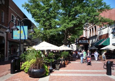 O Downtown Mall e uma area comercial sem automoveis que se estende por oito blocos de Main Street, pavimentada com tijolos e granito, rodeada de arvores e equipada com fontes e bancos. Este distrito de quatro acres conecta lojas, restaurantes e locais de entretenimento em um unico ambiente pedonal.