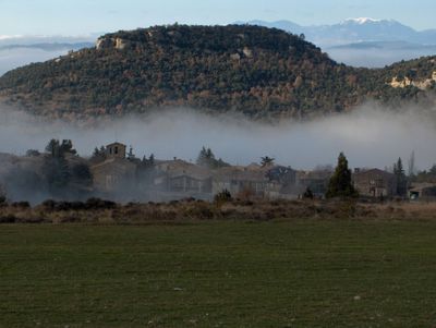 A cidade situa-se diretamente sobre penhascos verticais calcários que descem 100 metros até as águas do reservatório de Sau.