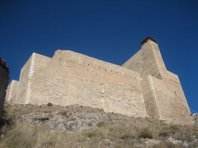 O Castelo de Alcalá de la Selva é uma fortaleza medieval construída em terreno elevado na província de Teruel, Aragão. Muros de pedra e torres se erguem sobre o topo do morro, criando uma estrutura defensiva que domina os vales circundantes.