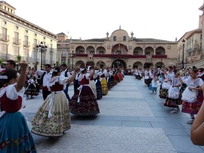 Plaza de España em Lorca é um espaço retangular no centro da cidade cercado por edifícios importantes incluindo a Câmara Municipal e a Igreja de San Patricio. A área forma um conjunto coeso de estruturas de diferentes períodos arquitetônicos e funciona como um ponto focal de atividade pública.