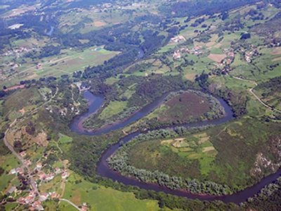 Meandros del Nora, Monumento Natural em Les Regueres e Oviedo, Espanha.