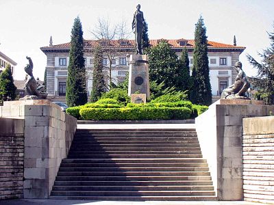 O monumento Francisco Franco é uma escultura de bronze na Plaza de España em Oviedo com três figuras principais. A composição apresenta Netuno cavalgando um golfinho, Apolo olhando para o sol e a deusa Hera posicionada no centro da estrutura da praça.