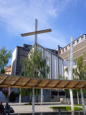 O edifício é um raro exemplo de arquitetura expressionista e brutalista concluído nos anos 1960, destacando-se do design tradicional de igrejas com sua forma piramidal impressionante. Essa abordagem pouco convencional de uma casa de oração a torna um marco distintivo que continua atraindo atenção no bairro.