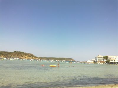 A praia serve como ponto de partida para práticas de pesca tradicional de Minorca, com barcos locais partindo diariamente.