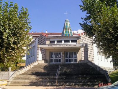 A Igreja de Virgen Milagrosa é um templo católico em Ourense com amplas janelas e interior profusamente ornamentado. O edifício apresenta elementos arquitetônicos eclesiásticos tradicionais espanhóis com decoração cuidadosa em todos os espaços.