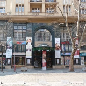 O Teatro Thália está localizado no centro de Budapeste com uma entrada moderna e múltiplos espaços de apresentação para produções teatrais.