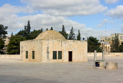 A Cúpula de al-Khalili ergue-se como uma estrutura de tijolos na plataforma central do Monte do Templo.