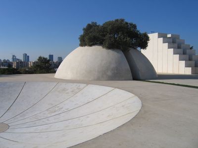 O Parque Edith Wolfson é um espaço verde público no leste de Tel Aviv com esculturas geométricas brancas, trilhas para caminhar e um lago artificial. O terreno se estende por uma encosta e inclui áreas sombreadas para sentar.