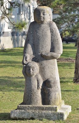 Mutter mit Kindern by Alfred Matzke, Kunstwerk von Alfred Matzke in der Wohnhausanlage Hochwassergasse 60, Wien Liesing