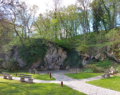A Gruta de Nossa Senhora de Lourdes é um santuário construído em Heiligenkreuz, na Baixa Áustria, com uma estátua da Virgem Maria e uma cruz de caminho. A estrutura de pedra cria um espaço íntimo projetado para devoção religiosa e oração.