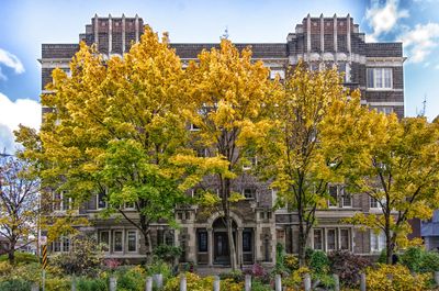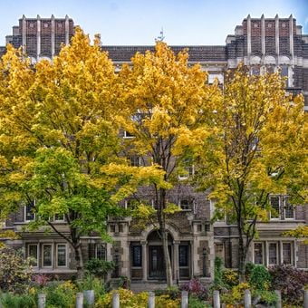 O Windsor Arms Apartments apresenta vitrais, pisos de terrazzo com incrustações de mármore e um pórtico detalhado em cinco andares.