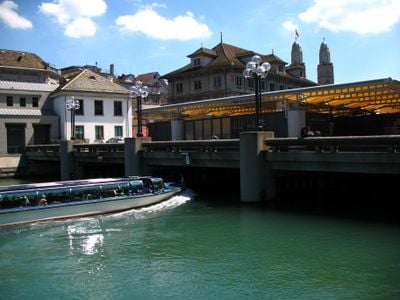 A ponte serve como ponto central de encontro e oferece vistas notáveis da arquitetura histórica do centro antigo de Zurique.