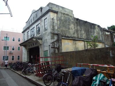 O Cheung Chau Theatre e um cinema na ilha de Cheung Chau em Hong Kong com caracteres chineses tradicionais na fachada e um auditorio com assentos de ferro no andar terreo. A estrutura arquitetonica original permanece visivel no interior do edificio.