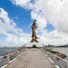 O Centro Ecumênico Kun Iam apresenta uma estátua de bronze de 20 metros emergindo de uma estrutura de lótus de 7 metros em uma via elevada.
