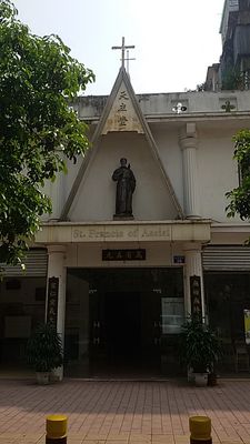 A Igreja Franciscana das Cinco Chagas apresenta arquitetura gótica com elementos chineses em sua estrutura de concreto armado de 1.000 metros quadrados.