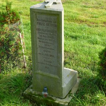 Pomník poručíka Franze Arthura padlého v bitvě 1866 u silnice z Čistěvsi do Mlékojed