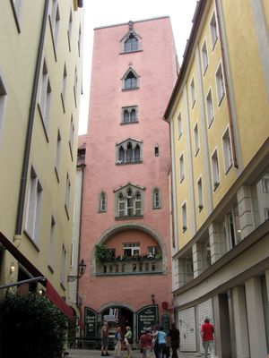 A Torre Baumburger é uma torre residencial medieval de sete andares no centro histórico de Regensburgo. Sua fachada apresenta arcadas arredondadas e grupos de janelas góticas que se abrem para a rua.