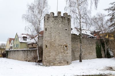 Mauerturm Maingasse 22a, runder Befestigungsturm, mit Zinnenkranz, zum Wohnturm ausgebaut, 15./16. Jahrhundert