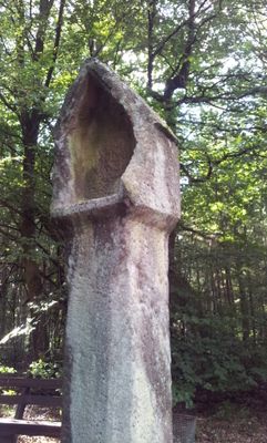 O santuário de arenito ergue-se por quase três metros em uma crista do Spessartskopf, a leste do vale norte de Olfen junto ao Finkenbach.