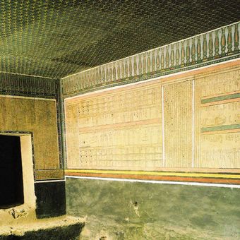 As inscrições e pinturas murais mostram cenas do Amduat, um texto religioso que descreve a jornada noturna do deus solar Rá através do submundo. Os visitantes podem observar os hieróglifos e as representações cuidadosamente executados que transmitem a crença na vida após a morte.