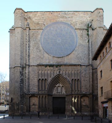 A construção do atual templo gótico começou em 1319, e o campanário foi finalizado entre 1460 e 1497 sob direção do mestre Bartomeu Mas.