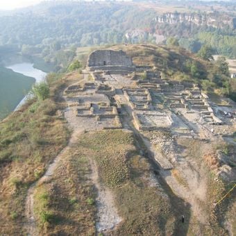 Pesquisas arqueológicas desde 1977 revelaram ocupação contínua do século VIII a.C. até o século XIV, incluindo assentamentos ibéricos e medievais.