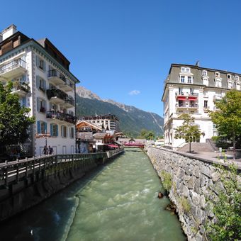 Localizada a 1.030 metros de altitude, Chamonix-Mont-Blanc estende-se ao longo do Vale do Arve, cercada pelos picos do maciço do Mont Blanc.