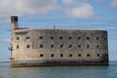 A fortaleza oval de pedra eleva-se 20 metros acima do nível do mar entre as ilhas de Oléron e Aix no estreito de Pertuis d'Antioche.