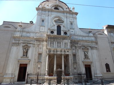 Santa Maria dei Miracoli é uma igreja renascentista em Brescia com uma fachada de mármore onde quatro colunas sustentam uma tribuna retangular coroada por um telhado inclinado e frontão estreito. No interior, uma abóbada cilíndrica se estende sobre o espaço central enquanto elementos decorativos de mármore adornam paredes e superfícies.