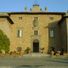 A Villa Giovanelli Fogaccia apresenta uma torre central de tufo rodeada por estruturas adicionais com bordas de travertino e pátios pavimentados.