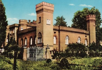 O castelo foi construído entre 1898 e 1914 pelo Conde Vittorio Sacerdoti, que modelou seu design na arquitetura dos castelos boêmios para honrar sua esposa Elena von Gutmann. Durante a ocupação nazista nos anos 1940, a propriedade enfrentou severas restrições devido ao patrimônio judaico da família Sacerdoti.