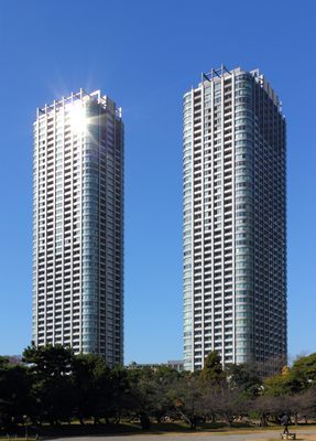 As Tokyo Twin Parks Towers são dois edifícios residenciais de 47 andares localizados em Higashi-Shinbashi, no distrito de Shiodome. As estruturas abrigam apartamentos modernos junto com áreas verdes e instalações comuns para os residentes.