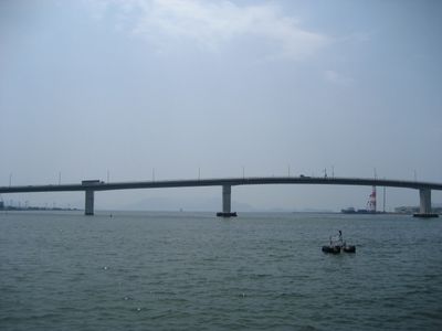 Hiroshima-Hatsukaichi Bridge, Ponte de aço na Baía de Hiroshima, Japão.