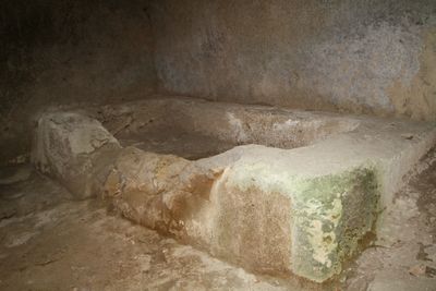As câmaras de pedra apresentam entradas retangulares cortadas com precisão e espaços internos que mantêm condições constantes de temperatura.
