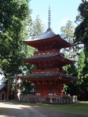 O pagode de Nagusa-jinja foi recebido como presente de Izumo Taisha em 1665 após Yabu-shi contribuir com uma árvore Myokensugi durante as renovações.