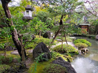 Um jardim adjacente projetado pelo famoso paisagista Jihei Ogawa VII enriquece a visita com um lago de carpas e lanternas de pedra. Esses elementos do jardim são visíveis de dentro através de portas deslizantes de vidro e oferecem uma vista externa tranquila durante o passeio.