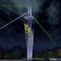 Asas transparentes de aço inoxidável envolvem a base da torre e se expandem para fora, criando um espetáculo luminoso.