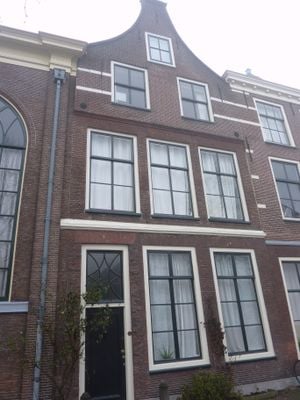 Pand met lijstgevel met speklagen. Onderbouw modern