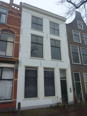 Pand met lijstgevel met speklagen. Onderbouw modern