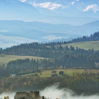 As ruínas do castelo ficam em um penhasco calcário que sobe abruptamente acima do reservatório, criando um ponto de observação natural. Desta posição elevada, os visitantes podem ver através da água em direção ao vale do rio Dunajec e montanhas além.